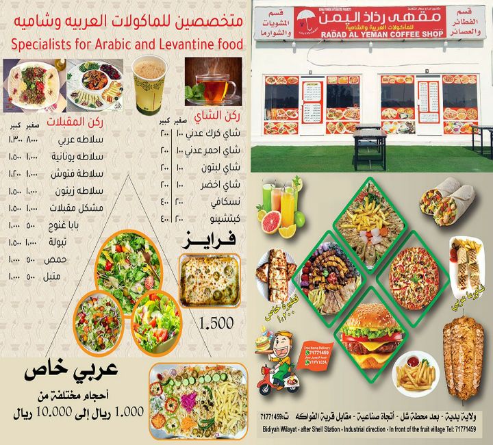 مقهى رذاذ اليمن للمأكولات العربية والشامية رقم المطعم 71771459 مدير المطعم 99887525