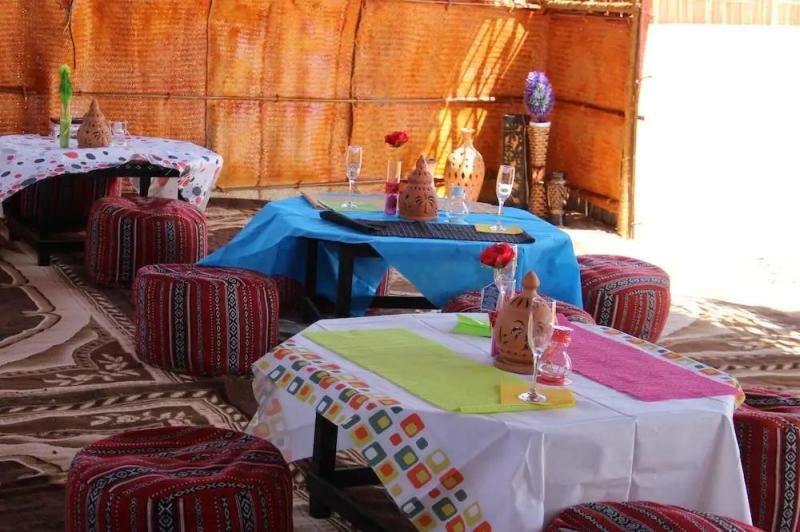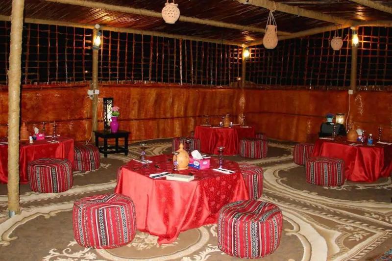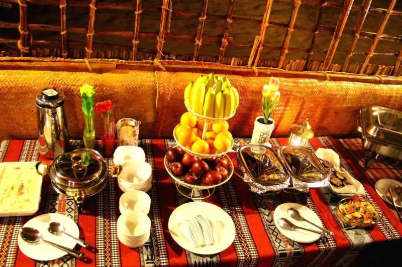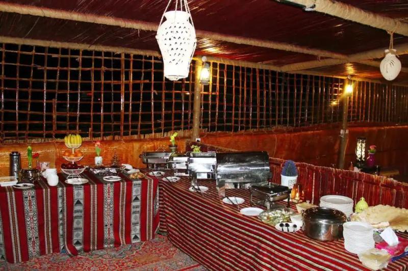 يتميز مكان الإقامة بمجموع من الغرف الخاصة بطابع بدوي ومجلس عام تراثي واسع ويمكن للضيوف الاستمتاع بتناول وجبة الطعام في المطعم الموجود في الموقع، كما يوفر مكان الإقامة أيضًا وجبات الغداء ووجبات الشواء في فترة المساء بالاضافة إلى مرافق شواء خاصة وملعباً للأطفال .