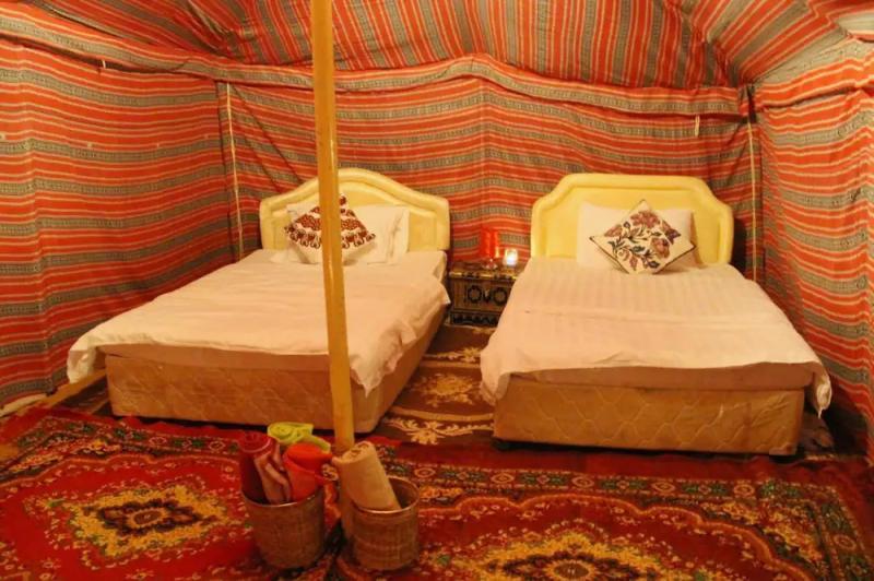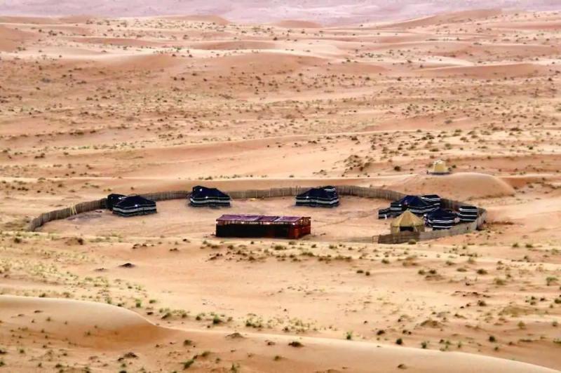 يقع على طريق مخيم المها العربي ومخيم ليالي الصحراء ، ويتطلب الوصول إلى المخيم سيارات الدفع الرباعي .